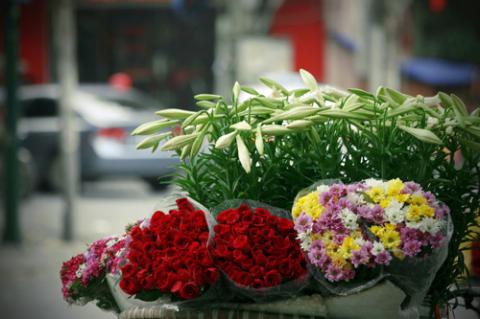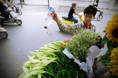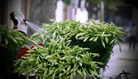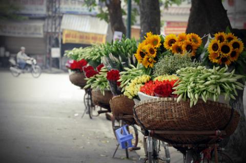... theo chân những người bán hoa dạo xuống phố.