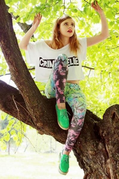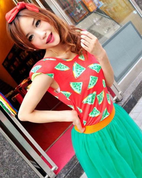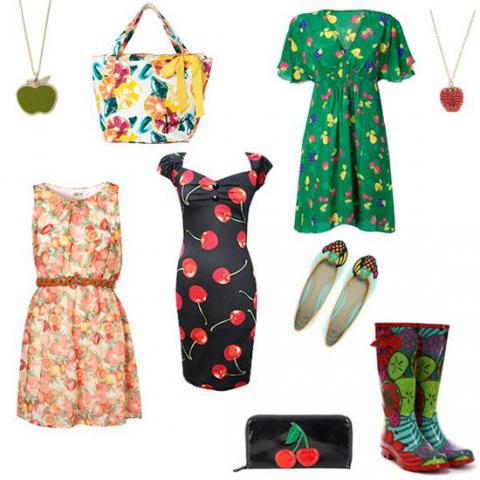 Những chiếc áo in hoa quả ngọt ngào trở nên cân bằng khi đi với sắc xanh.