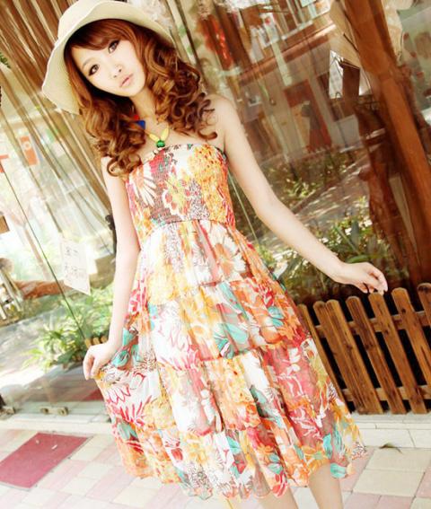 Khác với váy hoa nhí, những chiếc váy hoa nhiệt đới không còn nhàn nhạt mà vô cùng rực rỡ.