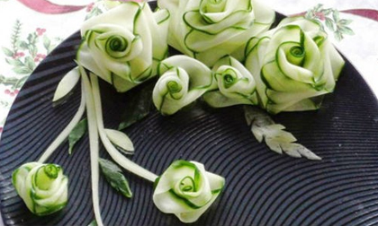 Món ăn sẽ ngon và hấp dẫn nếu được trang trí bằng bông hoa tỉa bằng dưa chuột. Nửa quả dưa chuột và chút thời gian là bạn có thể cắt tỉa dưa chuột trang trí tuyệt đẹp.