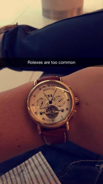 Đồng hồ Rolex quá phổ biến rồi! (Trong ảnh, anh chàng này đang đeo Breguet, một hãng đồng hồng siêu sang).