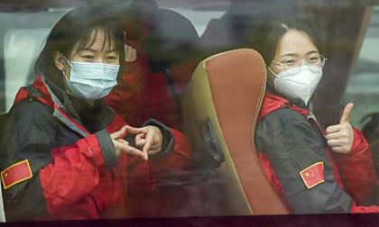 Nhân viên y tế ở Hàng Châu, tỉnh Chiết Giang, lên đường hôm 14/2 để tiếp viện cho điểm nóng