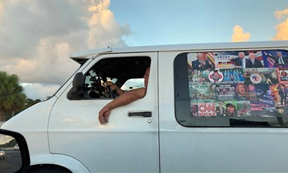 Chiếc xe tải trắng của kẻ tình nghi Cesar Sayoc dán đầy ảnh