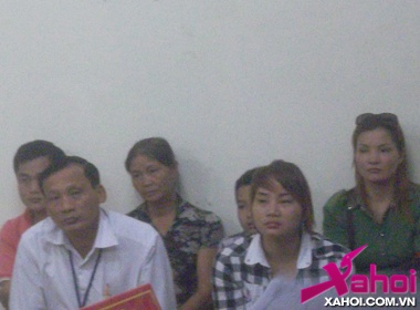 Chị Hằng (áo kẻ) đau đớn dự tòa