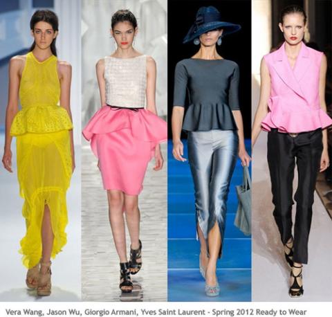 Nhìn lại sàn catwalk mùa xuân hè 2012 vừa qua, chúng ta có thể dễ dàng nhận thấy, chi tiết peplum (xòe sang hai bên) vừa được các nhà thiết kế vận dụng để thiết kế những dáng váy liền, vừa được ứng dụng trong cả những thiết kế váy bút chì, áo sơ mi, và áo jacket.