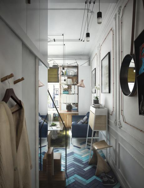Căn hộ nhỏ này được cải tạo trong một tòa nhà đầy lịch sử, được xây dựng vào những năm 1912 tại trung tâm thành phố St. Peterburg. Với diện tích vô cùng khiêm tốn 24m², thiết kế trần cao, nội thất cá tính, căn hộ đã tạo ra một không gian sống lý tưởng, đầy đủ tiện nghi. Căn hộ cũng được chú ý thiết kế với lượng gương lớn để nhận được tối đa nguồn ánh sáng tự nhiên từ bên ngoài, giúp căn hộ luôn tràn ngập ánh nắng, tránh cảm giác tù túng, chật chội mà diện tích mang lại.