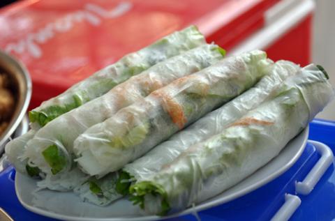 Riêng về đồ ăn mặn, các món quà vặt ở đây rất đỗi quen thuộc, hầu hết là thứ mà teen ăn hoài không chán. Chẳng thế, rủ nhau đến “thế giới” caramen nhưng chẳng bàn khách nào lại không kèm thêm đĩa nem chua rán, đĩa cá viên chiên, hoặc không thì dăm ba cái nem cuốn hay đôi chiếc bánh giò. Hấp dẫn nhất là giá của chúng cũng đều rất teen, dao động từ 10.000 - 20.000/đĩa.