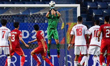 Sự tập trung này giúp thủ thành của CLB TP.HCM chủ động trong pha đón bóng bật ra sau đó. Cầu thủ UAE đã không thể lao vào để đá bồi ở cự ly gần khi Tiến Dũng chủ động tóm gọn bóng.