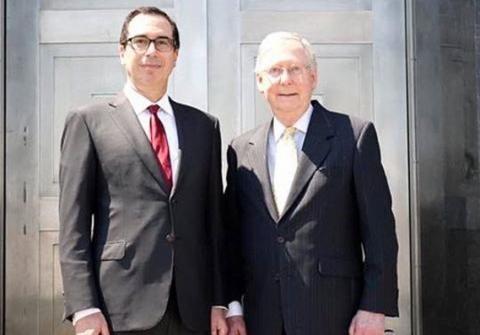 Bộ trưởng Tài chính Mỹ Steve Mnuchin và lãnh đạo Thượng viện Mỹ McConnell chụp