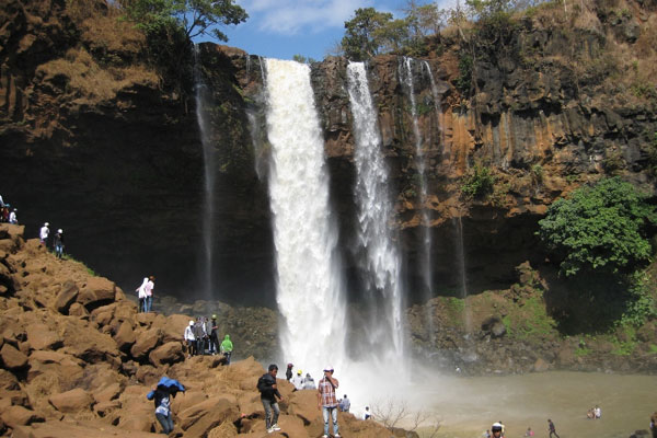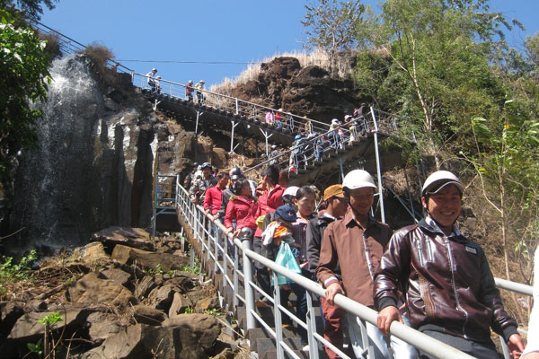 Thác Phú Cường tấp nập trong ngày Tết. Ảnh: Tiến Dũng