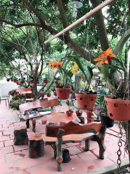 Khách đến ngồi chơi cứ muốn nán lại mãi để ngắm vườn hoa rực rỡ tràn ngập