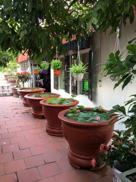 Khoảng sân vườn rộng rãi ngập sắc hoa bốn mùa của chị Điệp.