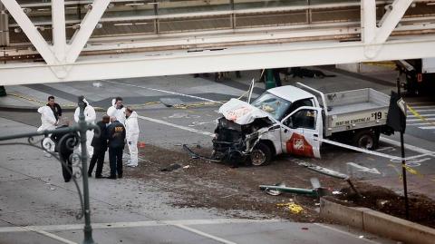Tám người thiệt mạng khi một tên khủng bố lái chiếc xe bán tải lao vào làn đường của người đi xe đạp và lao suốt hơn 20 block phố dọc sông Hudson ở Manhattan chiều ngày 31/10 (giờ địa phương) trước khi bị đâm khựng lại. Tên này nhảy ra ngoài, giơ mấy khẩu súng giả trước khi bị cảnh sát bắn hạ và bị bắt.