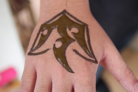 Thương hiệu Playboy qua nét vẽ Henna thể hiện cá tính. Ảnh Thúy Hà. |