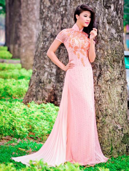 Giải đồng Siêu mẫu Việt Nam 2009 Kim Dung khoe vẻ rạng rỡ với bộ sưu tập áo dài xuân đầy mày sắc.