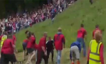 Một cuộc đua kỳ quặc vừa được tổ chức. Các thí sinh tham gia tranh tài lăn lộn từ trên cao xuống để đuổi theo một miếng pho mát cỡ lớn.