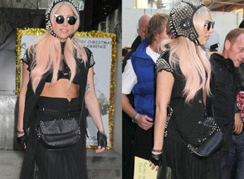 Trong thời gian ở Tokyo mới đây, Lady Gaga đã khiến mọi người nhớ lại lý do tại sao cô nàng được chú ý và yêu thích, đó chính là cách ăn mặc kì quái. Lần này cô nàng diện nguyên cả cây đồ đen, với điểm đặc biệt là chiếc mũ kiểu phi công và áo da đính đinh tán chi chít. Gaga phối chúng cùng với áo bra đen, chân váy pleat mỏng và tất nhiên là không thể thiếu những phụ kiện nổi bật như boots cao chót vót, kính gọng độc đáo, găng tay da xỏ ngón...