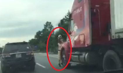 phải bám vào gương chiếu hậu của xe. (Ảnh cắt từ clip)