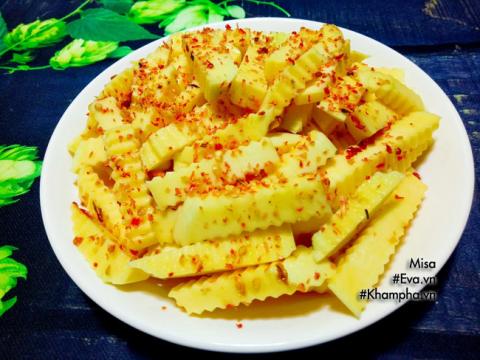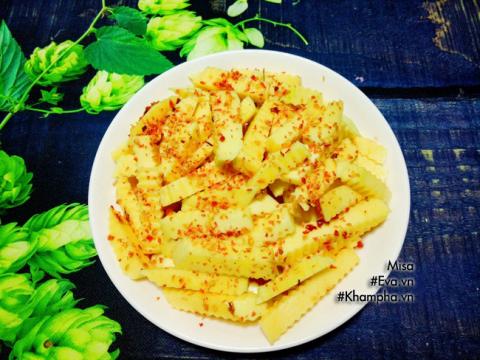 Bước 4: Cho xoài vào cái thố to rồi cho chén nước sốt ớt cay vào, trộn đều lên để cho ngấm khoảng 10 phút là ăn được.