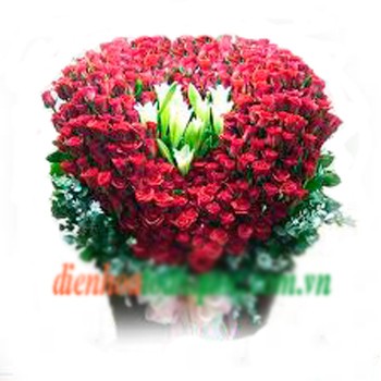 Lẵng hoa hình trái tim được kết từ hoa hồng đỏ và hồng trắng có giá 4 triệu đồng tại shop hoa Nancy ở Hà Nội |