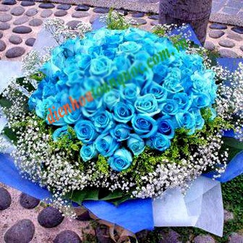 Bó theo kiểu đơn thuần không quá cầu kỳ, một bó hồng xanh như thế này được phát giá 2,4 triệu đồng.