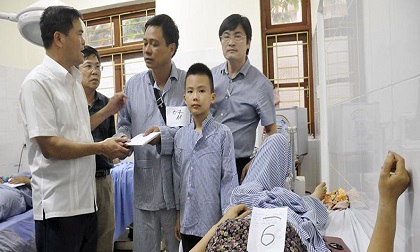 Lãnh đạo tỉnh Quảng Ninh thăm hỏi, trao tiền hỗ trợ cho nạn nhân bị tai nạn. (Ảnh; Tuấn Hương)