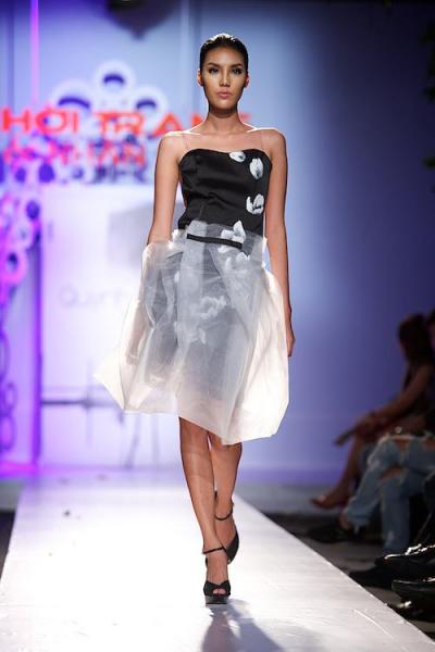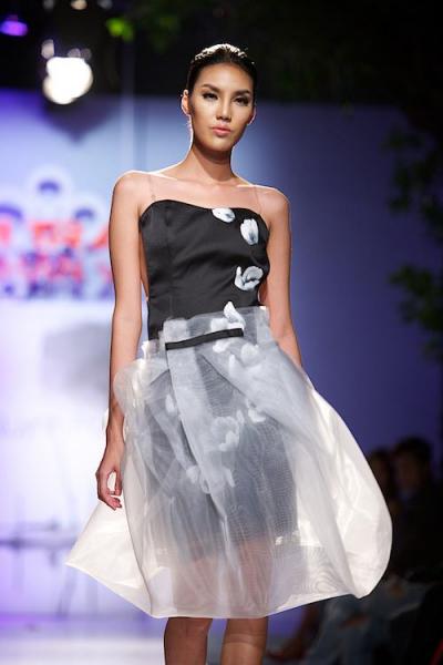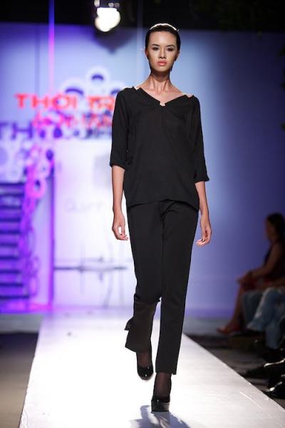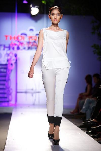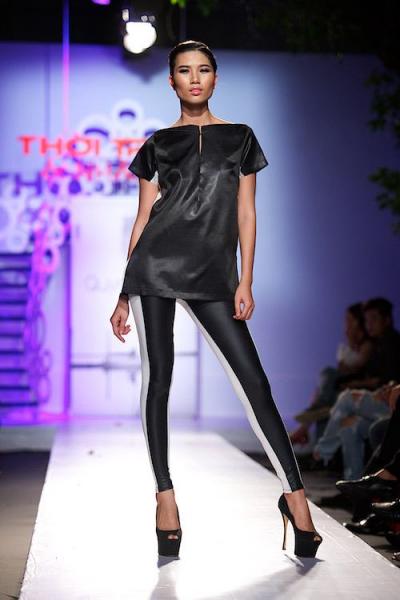 Hai tông màu đơn sắc là trắng và đen được NTK chọn làm gam màu chủ đạo. Chúng xuất hiện xuyên suốt bộ sưu tập và tạo nên nét hoàn chỉnh cho tổng thể. Điếm nhấn độc đáo và gây sức hút trong bộ sưu tập này là những mẫu quần legging gợi cảm trên chất liệu da bóng được kết hợp cùng áo lụa.