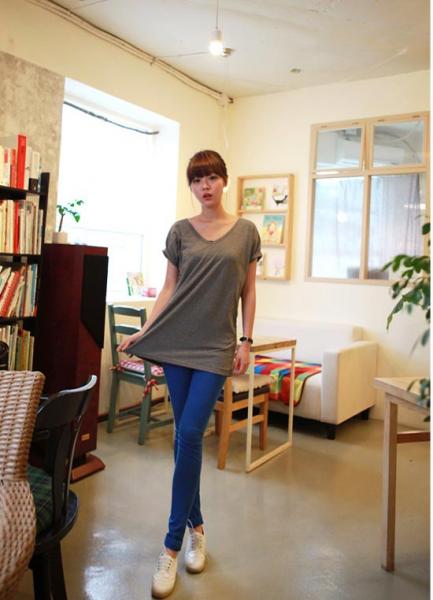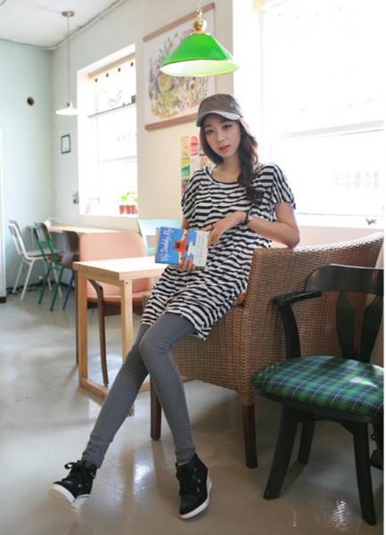 Legging xám sẽ trở nên sinh động khi bạn mix chung với áo sọc màu hoặc thun họa tiết dáng rộng đấy nhé!