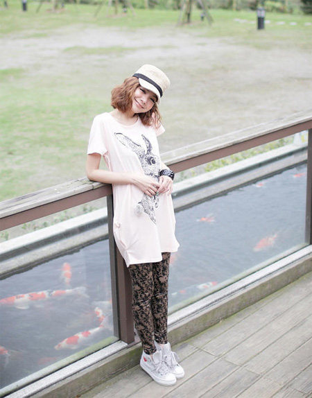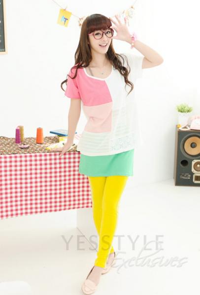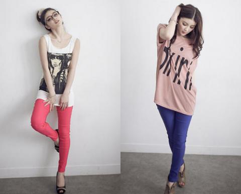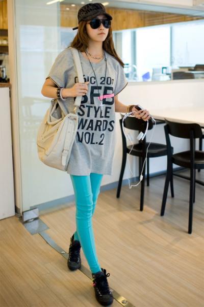 - Còn quần leggings có màu "chói" thì nên chọn áo cùng ton màu hoặc gam màu pastel (màu nhạt) để làm nổi bật bộ trang phục. Bạn gái có vòng đùi và bắp chân to không nên diện leggings sắc màu với váy ngắn hay quần short.