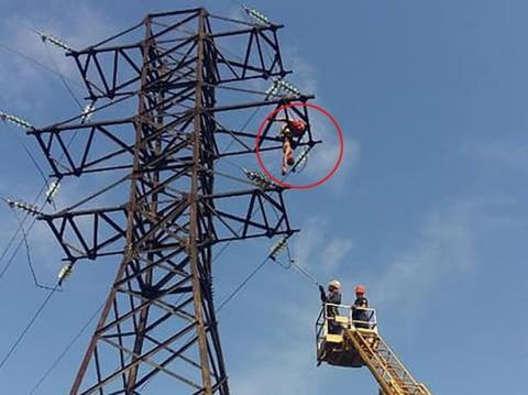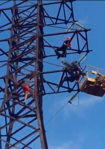 Cậu bé leo lên cột điện cao thế để chụp ảnh tự sướng.