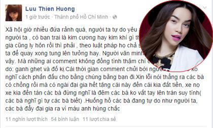 Lưu Thiên Hương lên tiếng ủng hộ Hà Hồ.