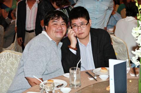 Lý Hùng - Hoàng Mập trong đám cưới diễn viên hài Hữu Nghĩa. |