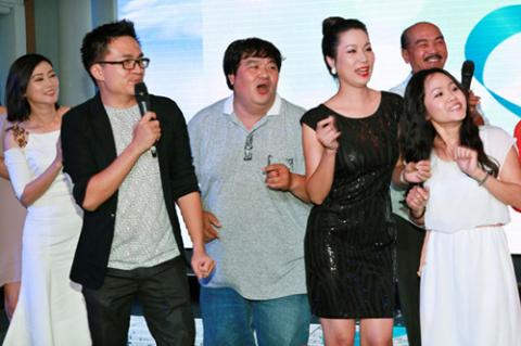Lý Hùng chụp ảnh cùng các đồng nghiệp