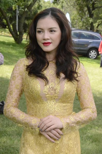 Nàng kiều nữ diện áo dài ren nhẹ nhàng khi tới thăm thủ đô Johannesburg của Nam Phi.