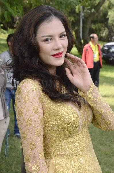 Với mục đích giới thiệu hình ảnh và vẻ đẹp của phụ nữ Việt trong mắt bạn bè thế giới, Lý Nhã Kỳ đã diện áo dài ren ánh vàng theo kiểu Hoàng gia của nhà thiết kế Võ Việt Chung. Bộ trang phục kín đáo tôn lên vẻ quý phái và dịu dàng của Đại sứ Du lịch Việt Nam.