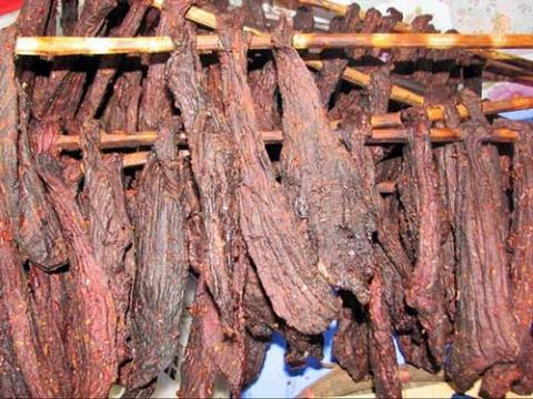 Thịt sấy thường có vị bùi, thơm, giòn hấp dẫn. Thịt trâu, bò khô được vùi vào tro bếp không có than để nướng sau đó đem ra đập hết tro và bụi là món nhắm lý tưởng của cánh mày râu uống rượu.