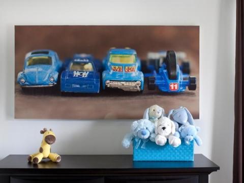 Dùng tranh ảnh treo tường với hình nhân vật hoặc món đồ bé thích cũng