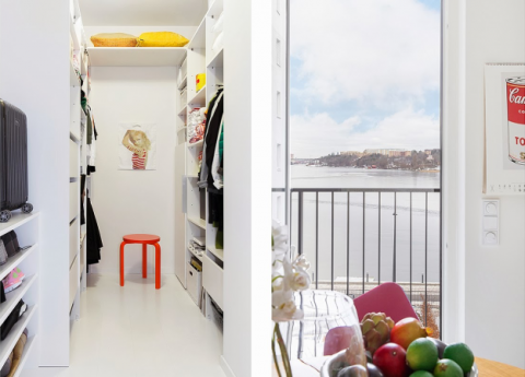 Tận dụng góc nhỏ hẹp và dài làm không gian lưu trữ quần áo, giày dép ngay cạnh lối vào là ý tưởng vô cùng tuyệt vời dành cho căn hộ nhỏ.