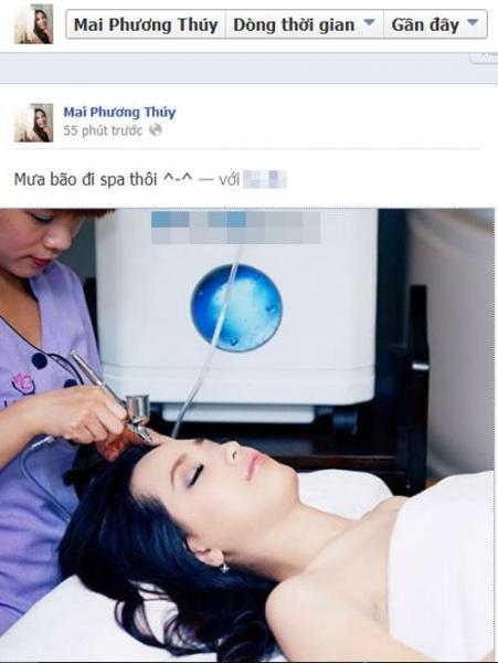 Vừa qua, cơn bão Haiyan vừa đổ bộ qua đất nước Philippines, miền Trung và miền Bắc Việt Nam đã càn quét và làm thiệt hại về người và của, Mai Phương Thúy cũng như những người dân tại Đông Nam Á rất đau xót về sự việc này. Tuy nhiên, người đẹp Mai Phương Thúy đã bị bôi nhọ nhân cách và bị quy chụp là vô tâm trước siêu bão Haiyan. Cụ thể, Facebook giả mạo Mai Phương Thúy đã đưa ra một status vô tâm rằng mưa bão thì nên đi Spa, kèm theo đó là một loạt hình ảnh thay đổi chóng mặt của người đẹp khi có sự can thiệp của spa từ trước đến nay. Một điều đáng lo ngại trong thời điểm này, đó là facebook giả mạo Mai Phương Thúy, đưa ra những status và hình ảnh kém tinh tế làm tổn hại nghiêm trọng đến hình ảnh của cô. Bởi kèm theo những hình ảnh là các comment phẫn nộ, đả kích người đẹp về hành động vô tâm.
