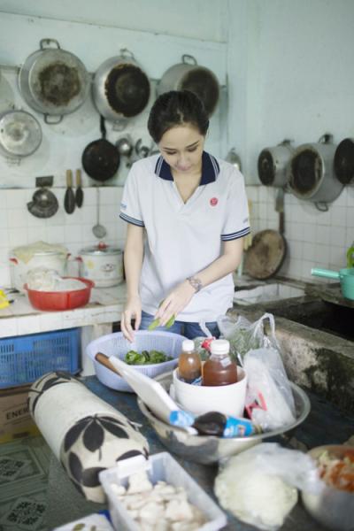 Ngày hôm qua (9/10), Mai Phương Thúy đã thức dậy từ rất sớm để cùng các người bạn của mình chuẩn bị cho một buổi nấu ăn cho các nghệ sĩ già tại một viện dưỡng lão ở quận 8, TP. HCM.