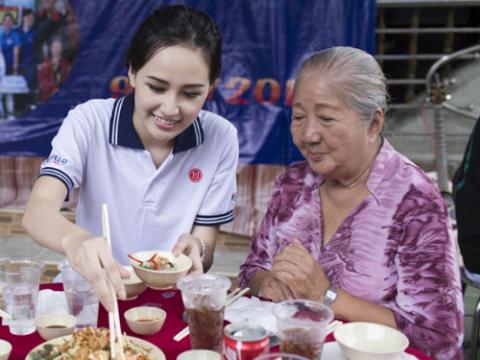 Hoa hậu Việt Nam 2006 cùng Nguyên Khang, ca sĩ Phạm Quỳnh Anh và các người bạn đã có một buổi nấu ăn đầy ý nghĩa cho các nghệ sĩ già ở một viện dưỡng lão.