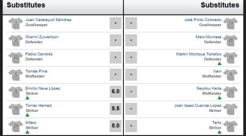 So với trận đấu hồi giữa tuần với Grananda, trận đấu này, Barca có tới 3 sự thay đổi về mặt nhân sự. Adriano, Keita và Cuenca không được đá chính mà nhường chỗ cho Busquets, Fabregas và Pedro.
