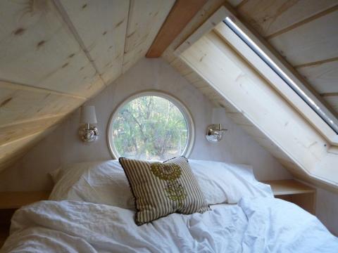 Ngôi nhà tuyệt đẹp này nằm ở Ojai, California, Mỹ, được chính chủ nhân của nó xây dựng và thiết kế từ một đoạn xe kéo có diện tích 13m² với đầy đủ tiện nghi cần thiết cho sinh hoạt hàng ngày. Với bánh xe bên dưới, chủ nhà có thể dễ dàng di chuyển “tổ ấm” của mình từ nơi này đến nơi khác. Điểm đặc biệt của nó chính là toàn bộ điện năng sử dụng của lò sưởi, bếp lò hay hệ thống nước nóng-lạnh đều được cung cấp nhờ nguồn năng lượng mặt trời vô hạn. Tuy diện tích bên trong khá nhỏ nhưng gia chủ đã biết tận dụng chiều cao của ngôi nhà để trang trí, cũng như là lưu trữ đồ đạc.