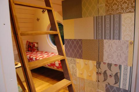Cầu thang dẫn lên chiếc giường ở bên trên.