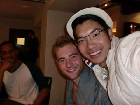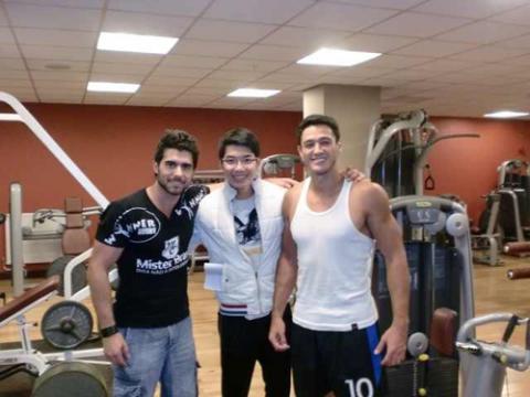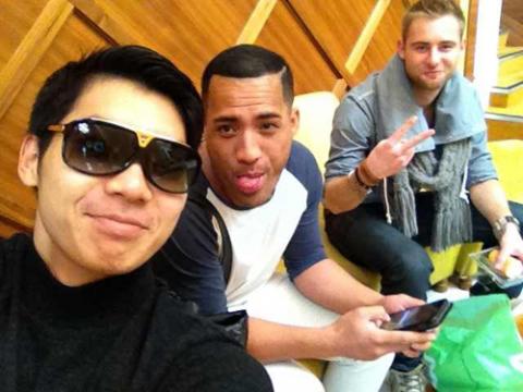 Nam Thành chụp chung với thí sinh người Bỉ (ảnh trên) và thí sinh người Anh (ảnh dưới) - những chàng trai từng đoạt ngôi á quân Manhunt giống như anh.