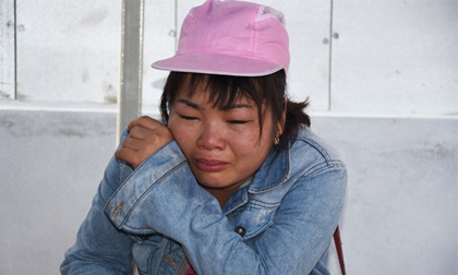 Chị Huyền khóc gọi tên con. Ảnh: Đoàn Nguyên.