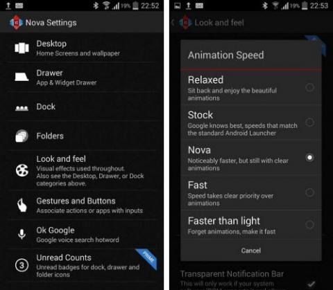 Tùy thuộc vào Launcher (nơi đặt các widget và ứng dụng), bạn có thể sở hữu và sử dụng khá nhiều hình động và hiệu ứng đặc biệt có sẵn trên máy. Mặc dù những hình ảnh này đem lại cái nhìn tuyệt vời hơn nhưng cũng làm cho máy chậm đi không ít. Việc cần làm tiếp theo là bạn nên kiểm tra cài đặt Launcher để vô hiệu hóa các tính năng bổ sung không cần thiết, thiết bị nhờ đó sẽ được tăng tốc.
