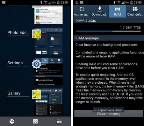 Các ứng dụng đa nhiệm (Multi-tasking) giúp bạn dễ dàng chuyển đổi giữa các công cụ nhưng cũng có thể gây ảnh hưởng đến hiệu suất. Bạn có thể nhanh chóng đóng ứng dụng không còn sử dụng bằng cách nhấn giữ phím Home để mở danh sách các ứng dụng đang chạy và sau đó lướt đi các ứng dụng.