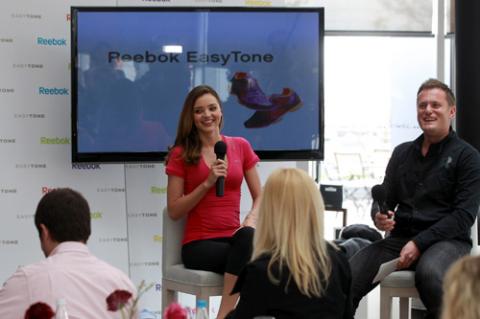 Bà mẹ một con tự tin đứng thẳng một chân và kéo một chân còn lại cao ngang đầu, khiến các phóng viên có mặt trong buổi họp báo vô cùng thích thú, và tất nhiên họ không thể bỏ lỡ khoảnh khắc đáng yêu này. Trong trang phục thể thao, đặc biệt là sắc đỏ nổi bật của chiếc áo, Miranda Kerr trông tươi tắn và trẻ trung như thiếu nữ mới đôi mươi.
