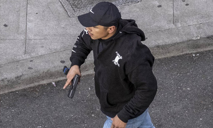 Nghi phạm cầm súng lục ra khỏi xe. Ảnh: The Seattle Times